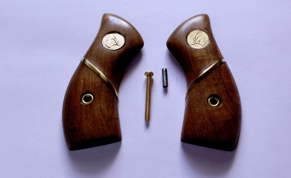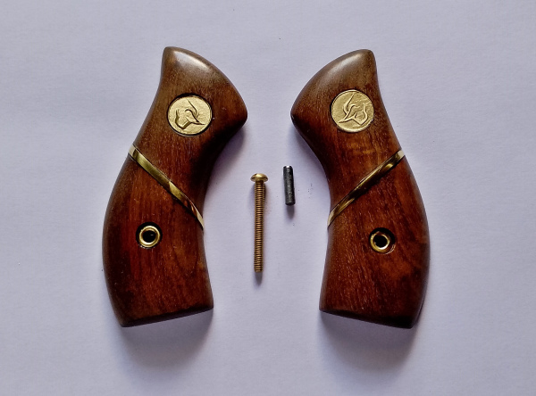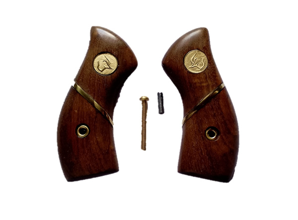 Cabo, coronha, empunhadura super luxo, para revólveres da Taurus, desenvolvida em madeira nobre de alta qualidade (madeira Ebano brasileiro/ Pau Ferro legítimo) com acabamento natural da madeira, sem adição de química, ou coloração. Com acabamentos e parafuso em latão polido! Ideal para porte velado, devido ao seu tamanho reduzido! Exclusividade!